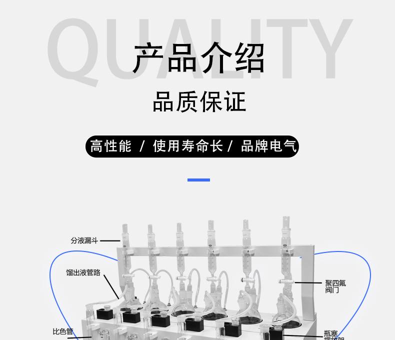 9、垂直加酸,加酸單元與反應(yīng)瓶采用磨口垂直連接;加酸單元的調(diào)節(jié)旋鈕采用聚四氟乙烯材質(zhì)防止酸堿液體腐蝕。